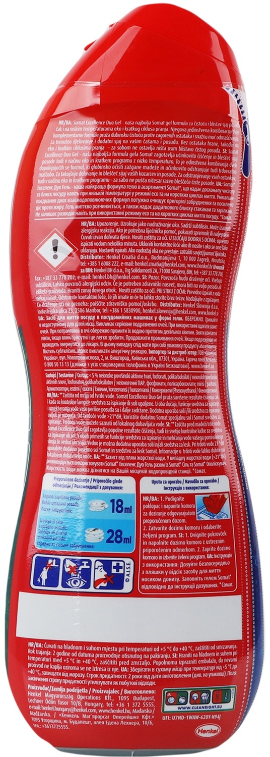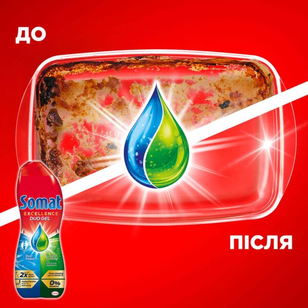 Для бездоганної чистоти та красивого блиску посуду необхідно використовувати мультифункціональний продукт Somat excellence duo gel антижир. Це найпотужніший засіб з лінійки гелів цього бренду, оскільки він здатен упоратися із цілою низкою завдань!
