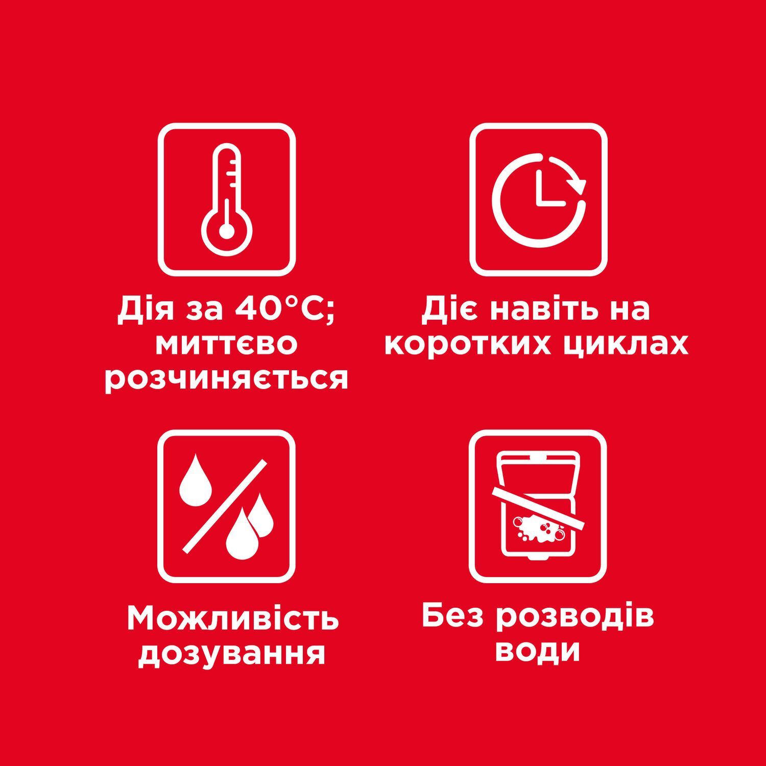 - Бездоганно очищає вироби, надає їм дзеркального блиску й миттєво розчиняється навіть у жорсткій воді;