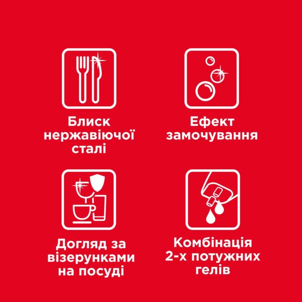 - Захищає металевий, фарфоровий і скляний посуд від появи нальоту та білих розводів;