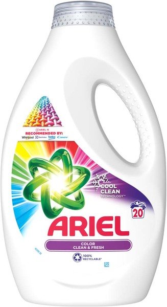 Гель для прання Ariel Color - це чудове видалення плям з першого прання. Хоча Ariel нещадний до плям, він дуже дбайливо поводиться з одягом і зберігає яскравість кольорів. На відміну від звичайного прального порошку, гель для прання Ariel одразу потрапляє в барабан пральної машини, починаючи діяти з моменту завантаження прання. Він усуває забруднення, що спричиняють неприємні запахи, як-от запах поту й тіла, надаючи кольоровому одягу сяючої чистоти та приємного аромату. Для надання додаткової свіжості та м'якості використовуйте разом із кондиціонерами для білизни Lenor. Ariel Color також пропонується у формі прального порошку та капсул.