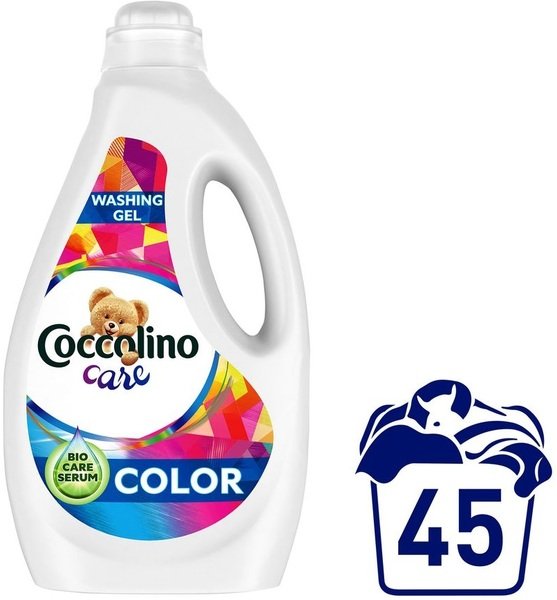 Гель для кольорового Coccolino – це новинка серед пральних засобів цієї марки. Формула рідкого порошку від Coccolino поєднує активні очисні елементи, які легко усувають навіть складні плями, разом з кондиціонером для білизни і захистом волокон тканин. Технологія Care Serum проникає у волокна тканин та покращує їх еластичність та зовнішній вигляд одягу. Все це робить гель для прання кольорових речей від Coccolino універсальним рідким порошком – чистить, пом'якшує, продовжує термін служби улюбленого одягу.