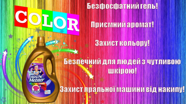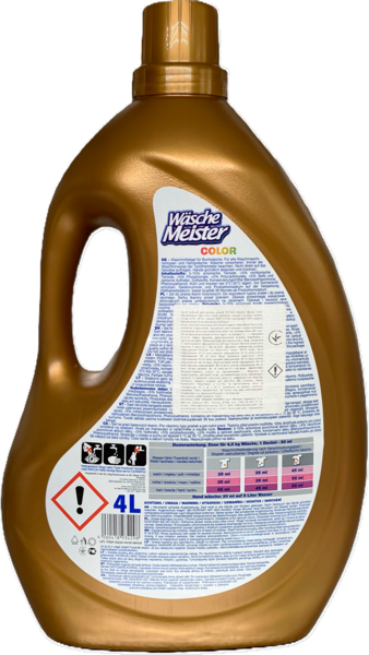 Wasche Meister - безфосфатний гель для кольорових тканин. Легкий, приємний аромат подарує речам свіжість. До складу рідкого порошку Wasche Meister color не входять шкідливі фосфати, тож ви можете бути впевнені в його якості та екологічності. Підходить для чутливої шкіри схильної до алергії - добре випирається, не викликає подразнень. Запобігає вицвітанню кольору. Склад гелю захищає деталі машини від накипу, тому вам не будуть потрібні додаткові засоби для захисту пральної машинки.