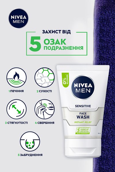 Схожі товари Гель для вмивання для чутливої шкіри Nivea Men Миттєве полегшення 100мл