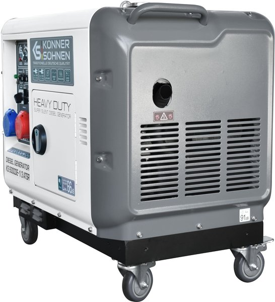 Електрогенератор дизельний серії Heavy Duty німецької торгової марки Könner & Söhnen є відмінним вибором як резервне джерело електроживлення. Оснащений антивандальним кожухом, що робить цю модель можливою для застосування у невеликих магазинах, кафе, ресторанах та особливо затребувані серед власників приватних будинків, де потрібне аварійне джерело живлення через часті перебої з електропостачанням.