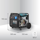 Інверторні генератори Könner & Söhnen оснащені транспортувальною системою для зручного переміщення. Два колеса і ручка, що піднімається під час переміщення генератора, забезпечують комфортне транспортування і мобільність агрегату.