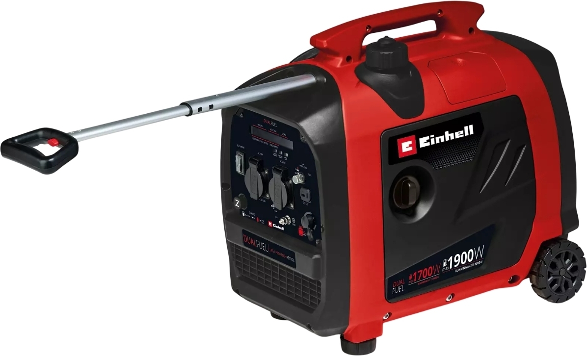 Генератор Einhell може працювати як на бензині, так і на газі (пропан, скраплений газ). Під час роботи на бензині він виробляє до 1800 Вт безперервної потужності і 1900 Вт пікової потужності. Під час роботи на газі він видає максимум 1600 Вт безперервної потужності та 1700 Вт пікової потужності.