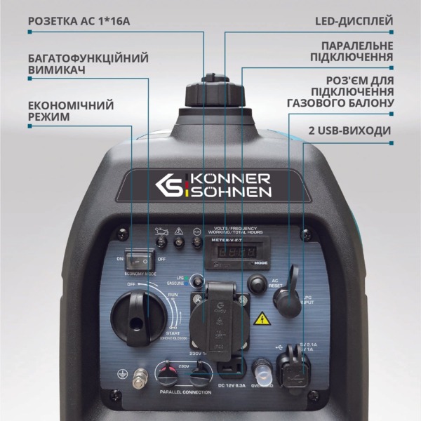 - Генератор газово-бензиновий інверторний Konner&Sohnen KS 3100iG S (KS3100IGS)
