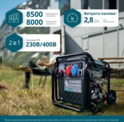 Дає змогу працювати як в однофазному (230 В), так і в трифазному (400 В) режимі без втрати потужності та забезпечує гнучкість використання генератора залежно від потреб користувача.