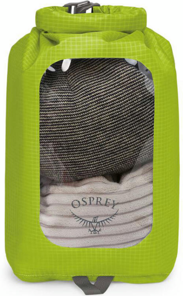 Нова лінійка гермомішків від Osprey. Завжди краще пакувати одяг у гермомішок, що слугуватиме роками, аніж у сміттєвий пакет. Головною особливістю цього DrySack є прозоре віконечко. Відтепер ви зможете точно переконатися, де розташовані потрібні речі в гермомішку. Оснащений водонепроникною застібкою, тканиною зі спеціальним вологовідштовхуючим покриттям та герметичними швами. Гермомішок має форму прямокутника. Таке рішення робить пакування вашого одягу більш ефективним. Це зручно, бо при правильному пакуванні мішок не падає.