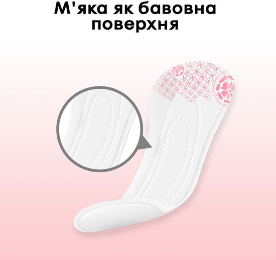 Спосіб застосування: Витягніть прокладку з упаковки, відклейте паперову стрічку із зовнішнього боку виробу та прикріпіть прокладку у внутрішній стороні спідньої білизни.