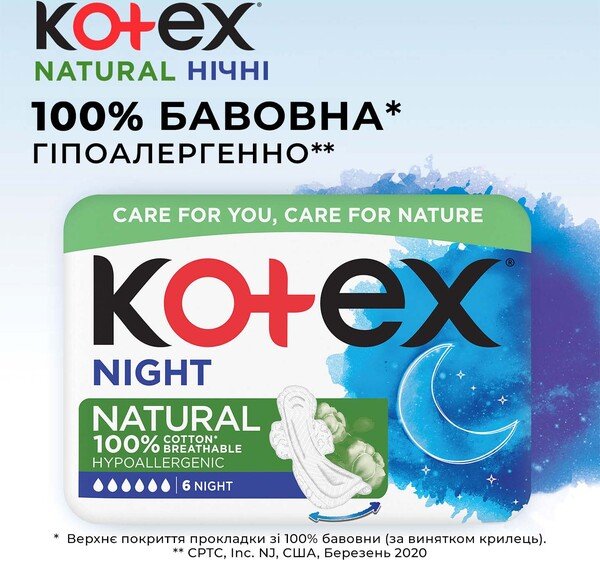 - Прокладки гігієнічні Kotex Natural Night 6 шт.