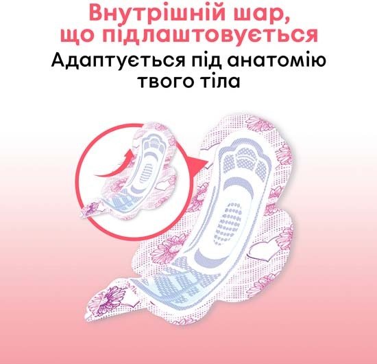 - Завдяки інноваційній системі Fast Absorb швидко вбирають вологу, рівномірно розподіляючи її по всій прокладці, що сприяє відчуттю сухості та комфорту