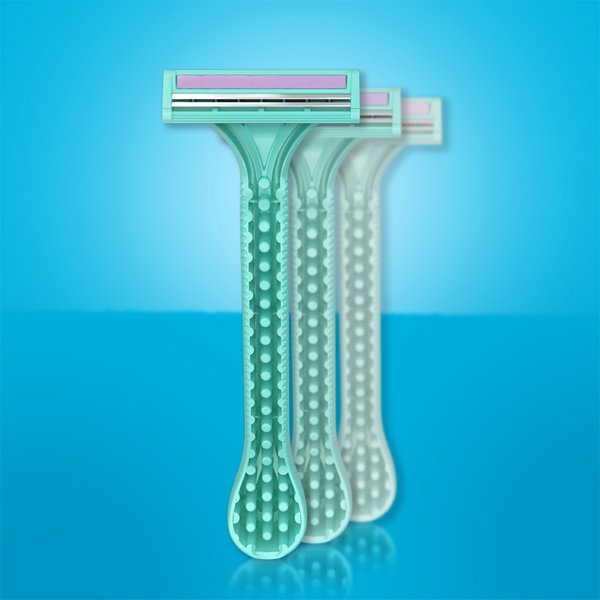 Два леза представленої бритви діють максимально обережно. Вони ніжно, майже невідчутно торкаються шкіри, зрізаючи волоски біля самої основи. М'які подушечки, розташовані навколо лез, заспокоюють та розгладжують шкіру.