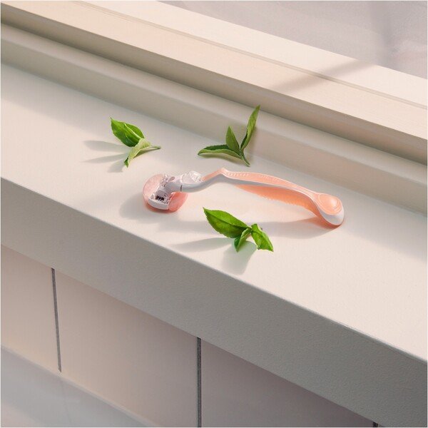 - Ергономічна ручка - ручка бритви має м'який прошарок гелю, що робить її зручною для тримання і виготовлена з вторинного переробленого пластику на 30%.
