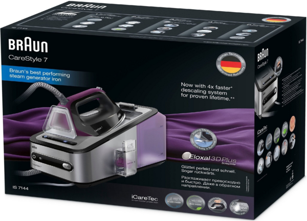 Доводиться гладити багато і часто? Потрібно особливо ретельний догляд за делікатними тканинами? Тоді зверніть увагу на Braun IS7144BK. Універсальна система iCare адаптується під особливості різних тканин, таким чином забезпечує їх захист від пошкоджень під час прасування. Висока потужність означає, що пристрій буде готовий до використання через лічені секунди з моменту включення його у розетку.