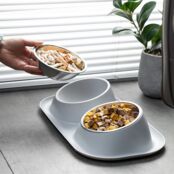 - Годівниця подвійна з металевими мисками Lapka (LPK-25) сіра