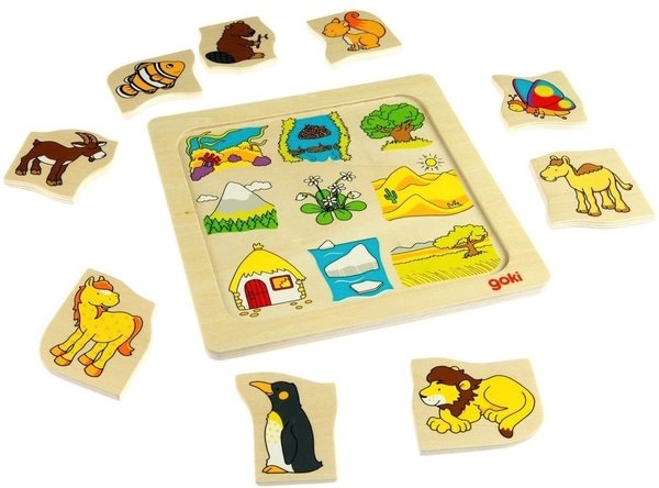 Я взяла сыну головоломку goki, так как она мне показалась довольно познавательной. Выполнена эта игрушка в виде пазла. На отдельных деталях изображены разные животные, а на дощечке показаны места их обитания и ребенок должен сопоставить все картинки. Мой ребенок этим очень увлекся и с удовольствием собирал эту головоломку. Хочу отметить, что сделана она весьма качественно. Все произведено из дерева и окрашена нетоксичными красками. Поэтому даю сыну играть с ней без опаски. Сами картинки нарисованы очень ярко и интересно. Единственное, что ребенок быстро запоминает расположение всех деталей, и теряет интерес к этой игрушке. Я ее впервые заметила дома у сестры. Она брала такую же для дочки. Я приобрела на данном сайте.