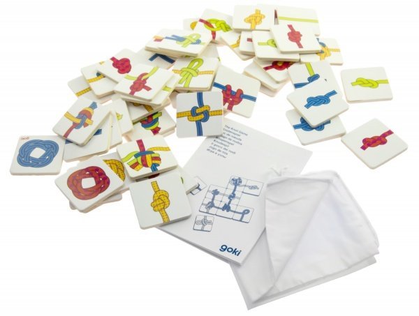 Игрушки от goki частые в нашем доме. Знаю не понаслышке, что это экологически безопасны и качественные игрушки. В этот раз мне знакомая посоветовала головоломку Узелок. Вещь интересная и очень развивающая. Ребенок с удовольствием может просидеть больше часа занят этой игрой. Тут вниманию предоставляют деревянные карточки с красочным изображением морских узлов. Надо составить самую длинную веревку своего цвета. Карточки без острых углов, хорошо помещаются в ручку ребенка, хорошо отшлифованы, занозу занести невозможно. Рисунки нарисованы безопасными красками и такие яркие. В комплекте есть инструкция, которая поможет разобраться с игрой. Главное, цена доступная. А как хорошо развивает логику, мышление и усидчивость. Брала тут.