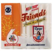 Господарське мило активної дії! Ніколи ще чистота не була такою доступною! Господарське мило Friend`s створено з високоякісної сировини рослинного походження - пальмової та кокосової олій. Унікальна формула господарського мила спеціально розроблена , вона включає спеціальні добавки спрямованої дії, що забезпечують чотирьох видів мила яскраво виражені властивості: відбілювання, видалення плям, щадного впливу на делікатні тканини і шкіру рук, спеціальні властивості для ефективного прання дитячої білизни. Всі види господарського мила мають приємні парфумерні композиції, які надають білизні аромат чистоти і свіжості. До складу мила введена ефективна добавка, сприяє видаленню плям з тканини. Для найбільш ефективного прання рекомендовано нанести мило на пляму на 10-15 хвилин, а потім прати як звичайно. Застарілі плями можна обробити двічі.