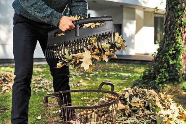 - Для згрібання листя, трави та інших садових відходів з малих і великих поверхонь, діє як скребок, може використовуватися для перенесення листя.
