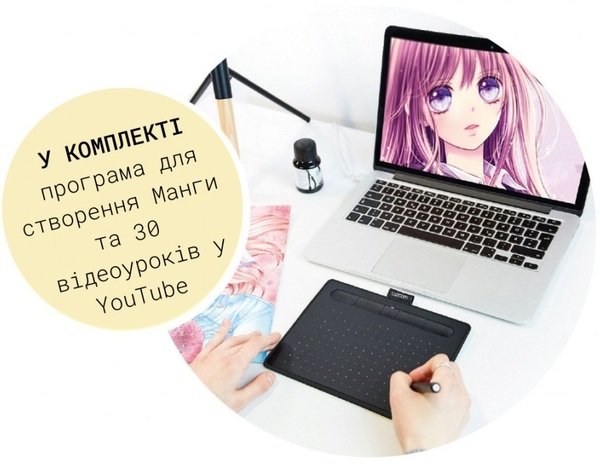 Обравши перовий планшет Wacom Intuos, ви зможете безкоштовно завантажити до трьох додатків для творчих завдань: Corel Painter Essentials 6, Corel Aftershot 3 та Clip Studio Paint Pro.