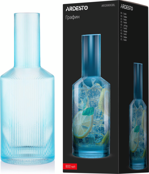 Графин Ardesto 800мл, боросилікатне скло, блакитний (AR2690GBL)