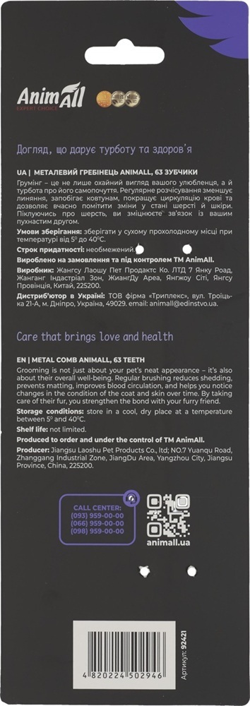 - Гребінець AnimAll Металевий (63 зубчики)