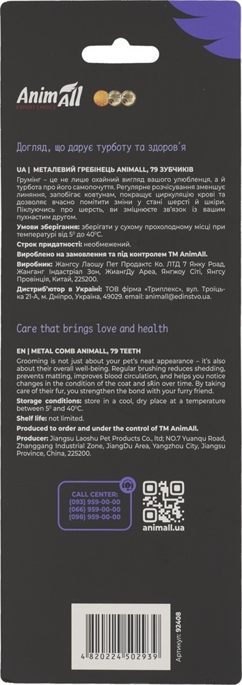 - Гребінець AnimAll Металевий (79 зубчиків)