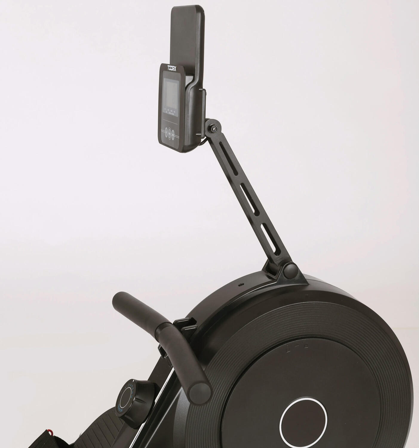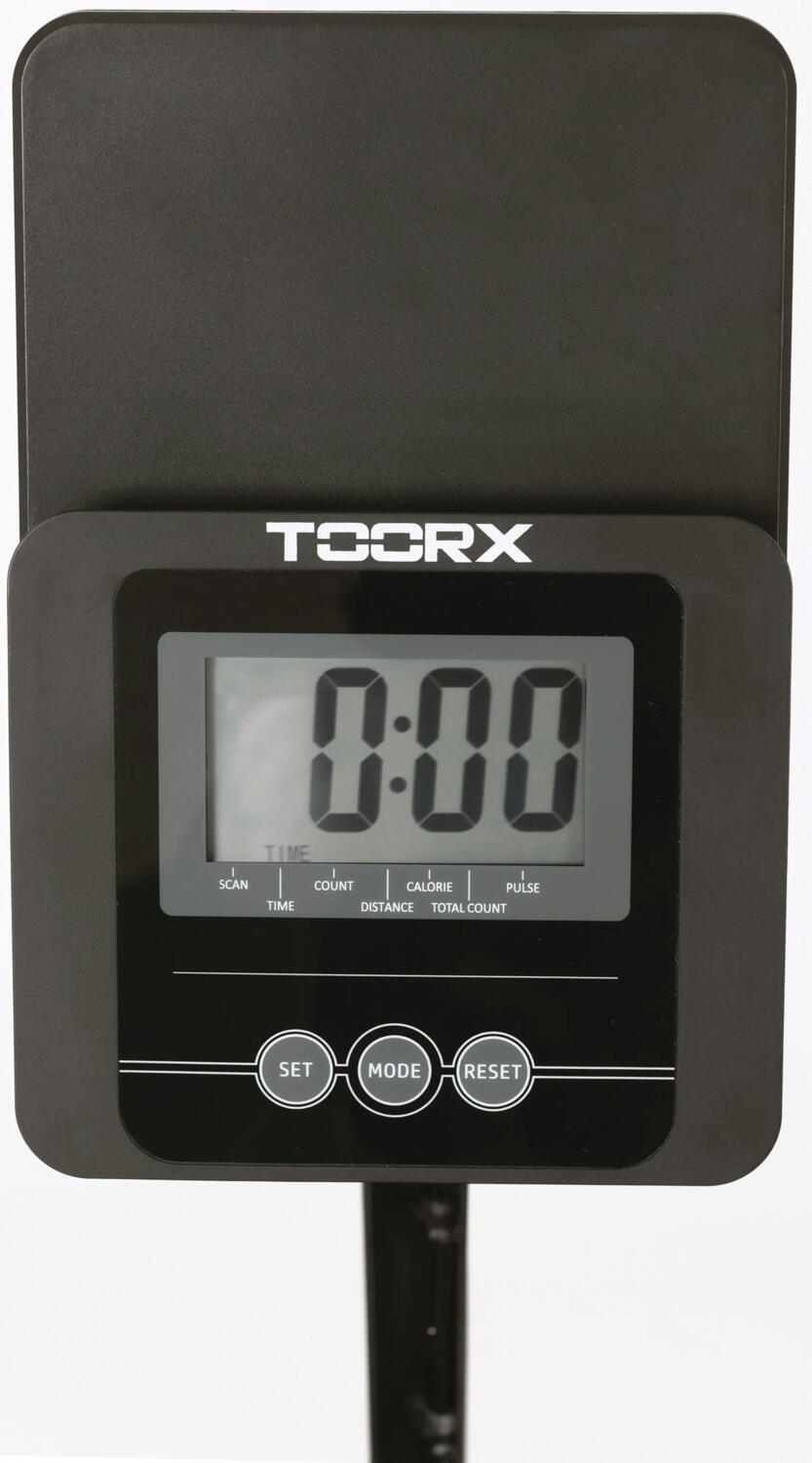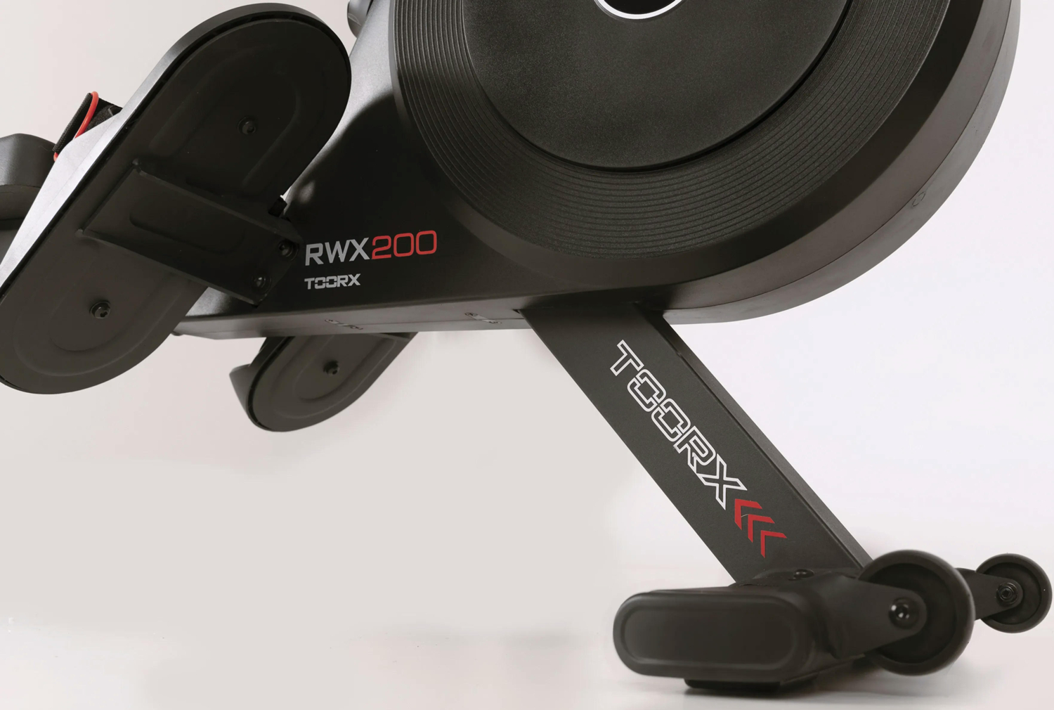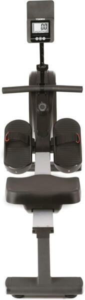 Гребний тренажер Toorx Rower RWX 200 від італійського виробника Garlando S.p.A. призначений для комплексного кардіотренування в домашніх умовах. Тренажер має 12-рівневе ручне регулювання навантаження, а також простий у використанні дисплей. 5-кілограмовий маховик завдяки магнітній системі гальмування забезпечує оптимальну амплітуду рухів, а повітряна система опору імітує відчуття веслування на воді. Гребний тренажер розрахований на вагу до 120 кг, а його сидіння на роликах ковзає по алюмінієвій напрямній, гарантуючи необхідний комфорт навіть за тривалих вправ. Вбудований приймач для бездротового датчика вимірювання пульсу буде доречним під час тренування для контролю частоти серцевих скорочень. Складана конструкція тренажера заощаджує місце та дозволяє розмістити його навіть на мінімальній площі, яка потрібна для занять спортом.