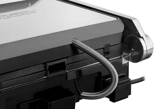 Гриль має неслизьку основу. Алюмінієва робоча поверхня і корпус з нержавіючої сталі забезпечать довговічність і надійність гриля.