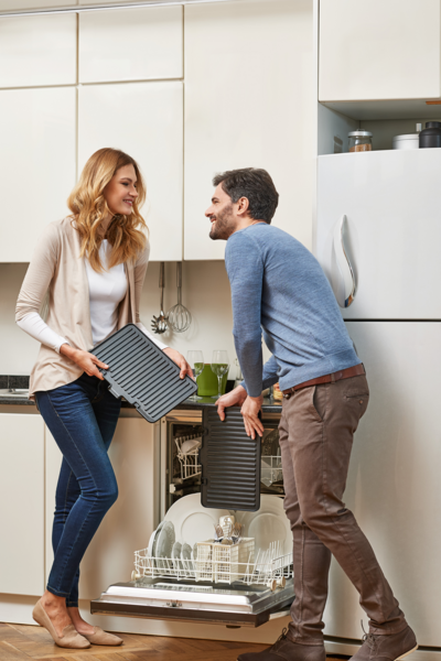 Як пластина, так і жирозбірник повністю знімні, їх можна мити в посудомийній машині для легкого очищення.