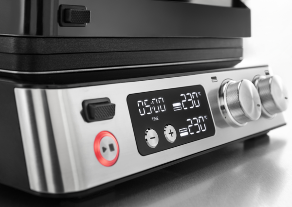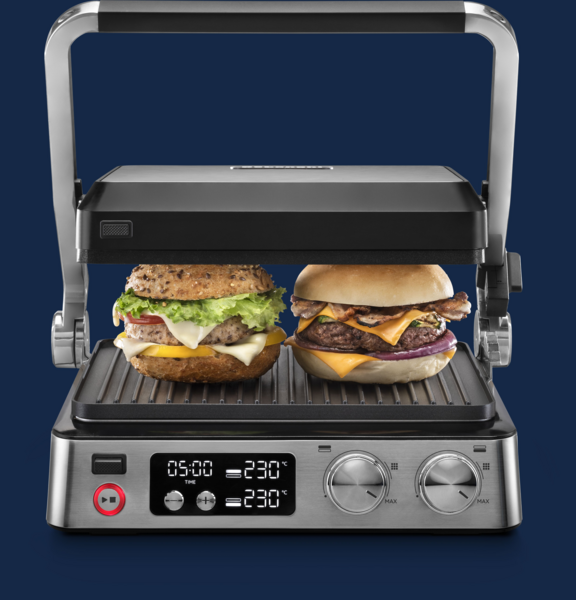 Наші грилі оснащені функцією електронного контролю температури, що забезпечує виняткову точність та рівномірний розподіл тепла по всій поверхні. Як тільки ваша їжа буде приготовлена, мультигриль попередить вас і автоматично вимкнеться.