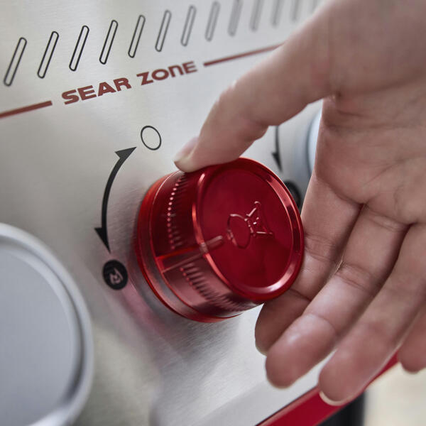- Три основні пальники з режимом Boost Mode Sear Zone для додаткової потужності та ідеальної скоринки.