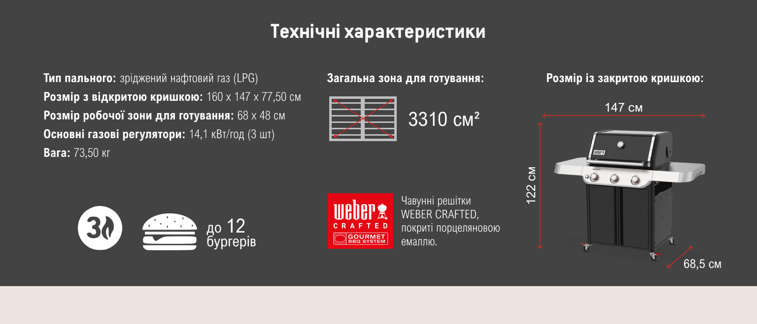 Схожі товари Гриль газовий Weber Genesis E-315, чорний (1500631)