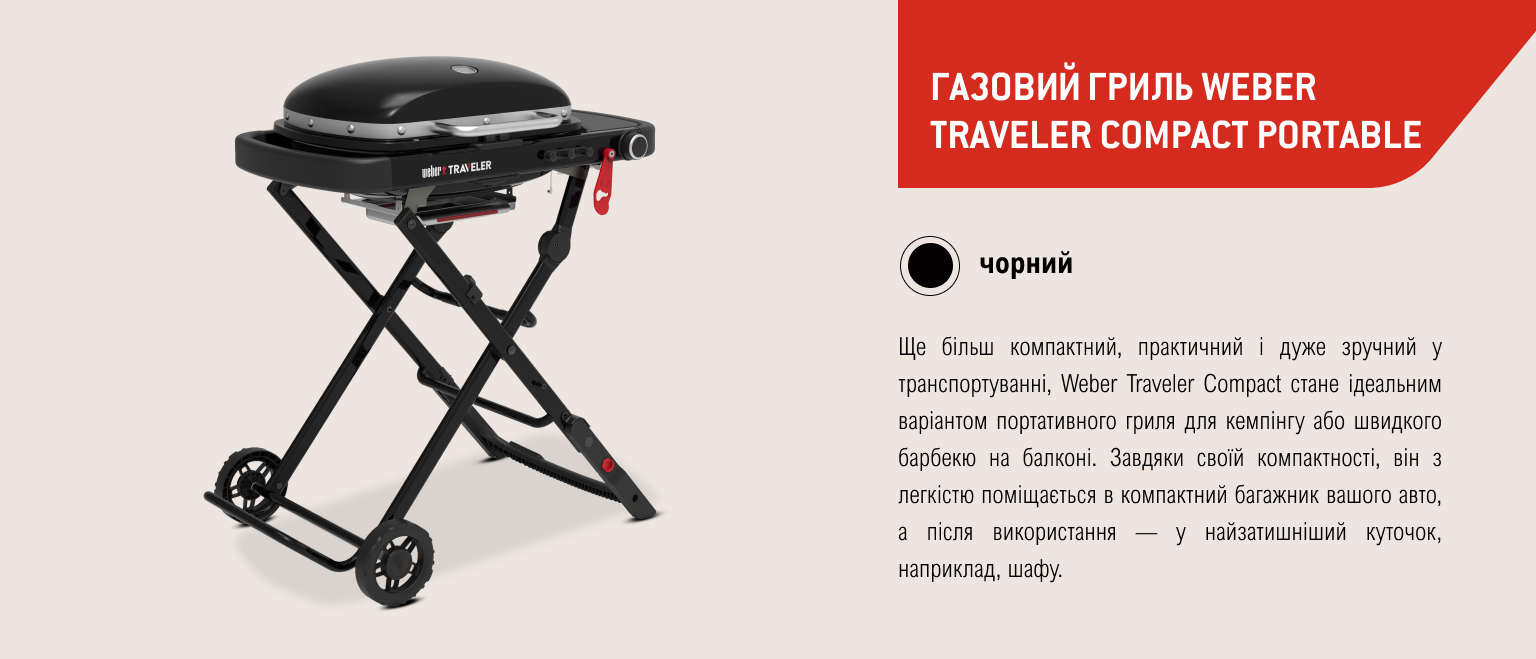 Схожі товари Гриль газовий Weber Traveler Compact Portable, чорний (1500527)
