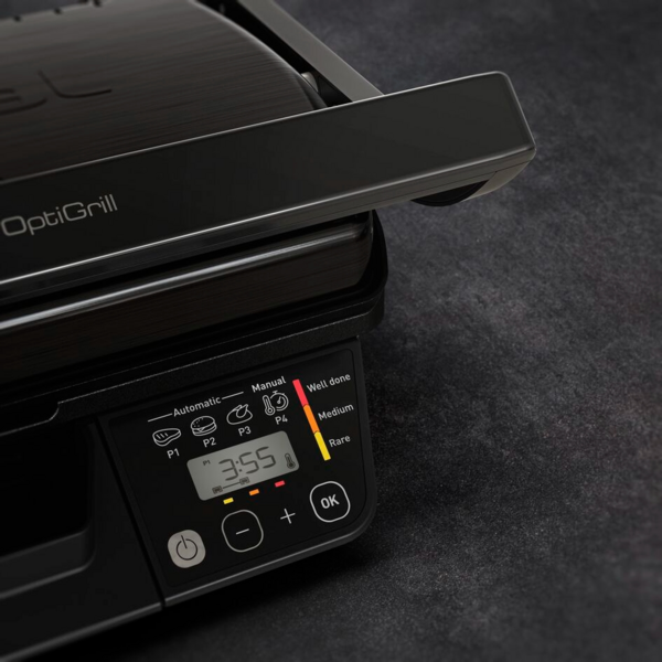 Електричний гриль OptiGrill вимірює товщину сировини з точністю до міліметра, розраховує кількість і автоматично регулює час приготування - для гарантовано ідеального результату!