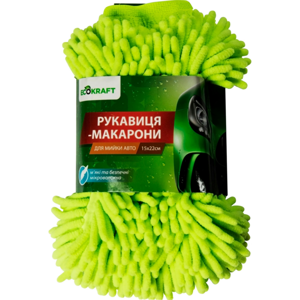 - Губка-рукавиця Ecokraft для миття авто Макарони 15*22 см