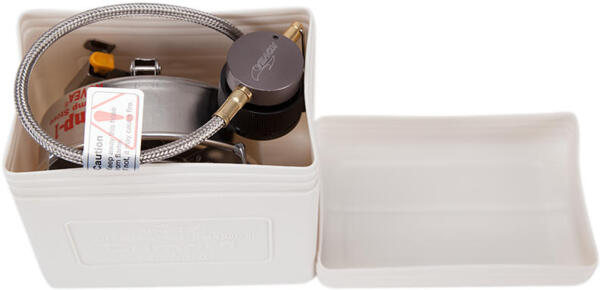 Обладнаний п'єзопідпалом газовий пальник розрахований на роботу при температурі зі знаком «мінус», тому має всі шанси стати незамінним супутником для екстремалів. Система попереднього підігріву газу гарантує рівне полум'я. Крім того, завдяки цій системі паливо згоряє повністю, що робить модель економічною та ефективною взимку. Щоб закип'ятити літр води, потрібно менш ніж п'ять хвилин. Працює пальник від різьбових балонів epi-gas. У комплекті йде спеціальний перехідник для підключення цангових балонів.