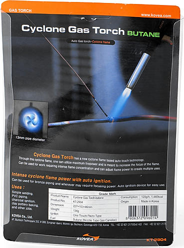 Газовый резак Kovea Cyclone butane KT-2904 покупал для дачи, по качеству понравился – быстро прогревается, удобно держать его одной рукой и работать второй. Неплохо справляется со своей задачей, работает от обычного стандартного баллона, подходит, чтоб спаять или сварить детали. Топливо расходится медленно и экономно.