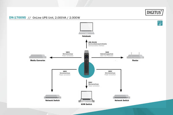 Системи DIGITUS OnLine – це надзвичайно надійні рішення, розроблені для захисту чутливих пристроїв від перебоїв у подачі електроенергії. Вони оснащені керуючими мікропроцесорами, щоб гарантувати найвищу продуктивність та безпеку корпоративних та офісних систем користувача, а також захист від втрати даних та можливого пошкодження.