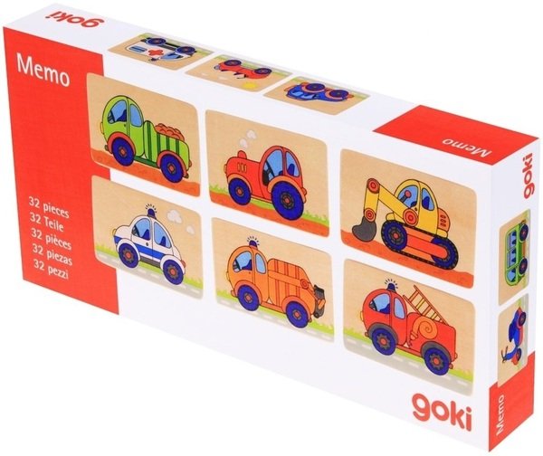 Розвиток Вашого малюка для нас дуже важливий, тому ми пропонуємо розвиваючу карткову гру від німецького виробника іграшок Goki" Транспорт" на увагу та запам'ятовування. У гру входить: інструкція та 32 картки з яскравими зображеннями, що створюють 16 пар зображень на тематику автотранспорту. Виграє той, хто знайде якнайбільше пар карток з однаковими зображеннями. В основі матеріалів, з яких виготовлені карти – натуральна деревина, покрита нетоксичними кольоровими фарбами, що створюють ефект ламінування поверхні. Розвиває у малюка: їхню логіку, мислення, уважність, пам'ять, візуальне сприйняття та моторику разом з іграшками від Goki!