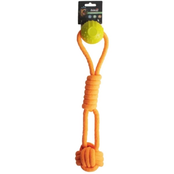 - Іграшка AnimAll AGrizZzly 9864 Інтерактивна мотузка з кулькою orange/yellow