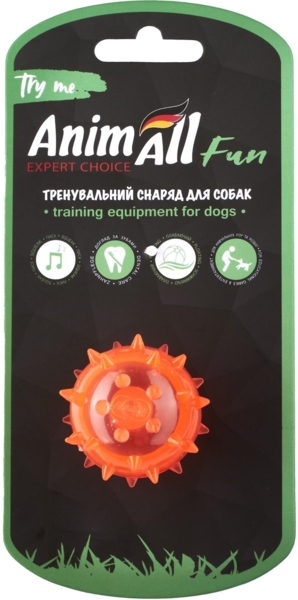 - Іграшка AnimAll Fun М’яч шипований з пищалкою 45 мм помаранчевий