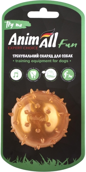 - Іграшка AnimAll Fun М’яч шипований з пищалкою 65 мм золотий