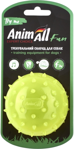 - Іграшка AnimAll Fun М’яч шипований з пищалкою 75 мм жовтий
