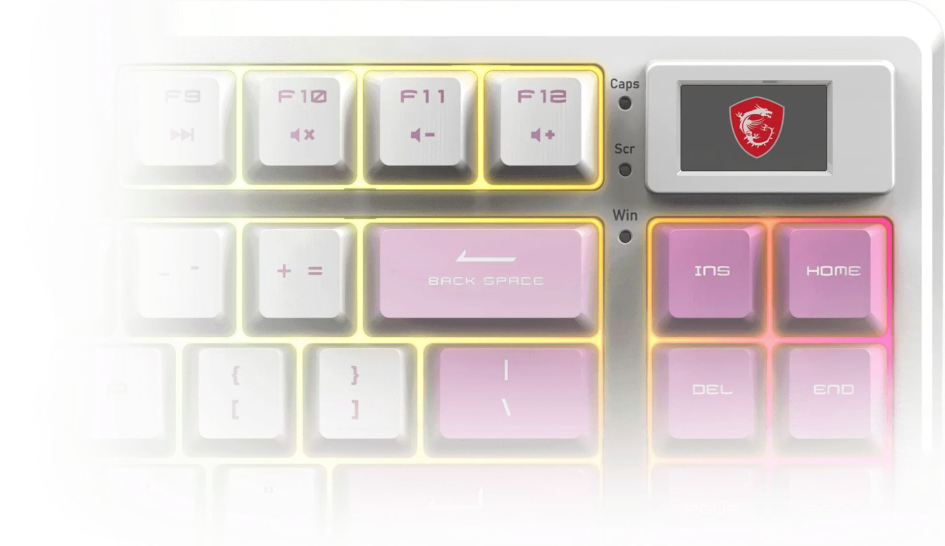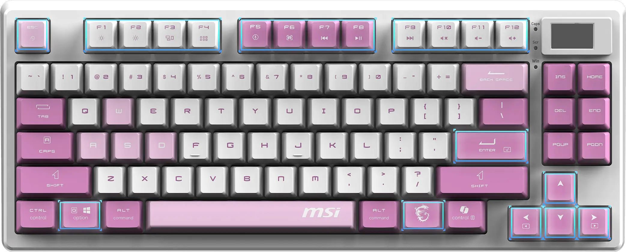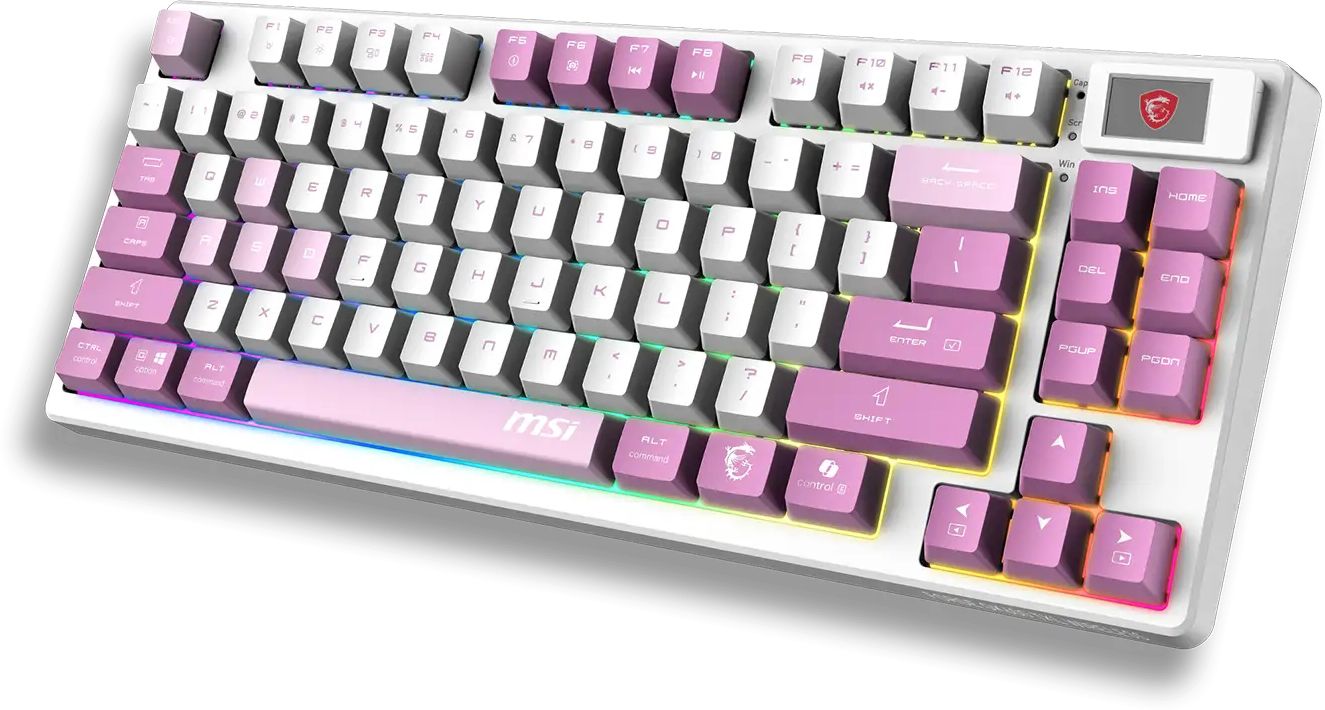 MSI FORGE GK600 TKL WIRELESS - універсальна клавіатура без цифрового блока з режимами підключення 2.4 ГГц, Bluetooth і USB. Вона оснащена змінними лінійними механічними перемикачами, міцними PBT кейкапами, звукопоглинаючими прокладками та дисплеєм 1.06". З RGB-підсвічуванням і батареєю 4000 мА*год, вона ідеальна для геймерів і творців.
