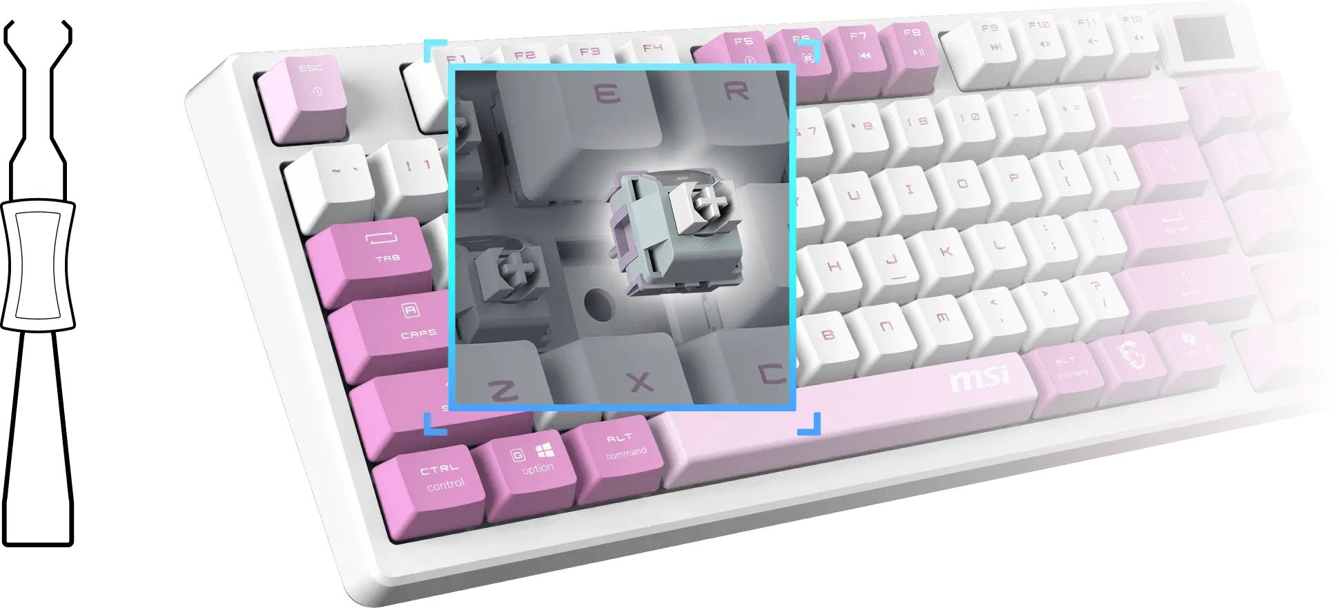 Ця клавіатура дозволяє легко замінювати стандартні механічні перемикачі на сумісні (5-контактні) без пайки. Це дає свободу набору та можливість продовжити життя клавіатури без додаткових зусиль.