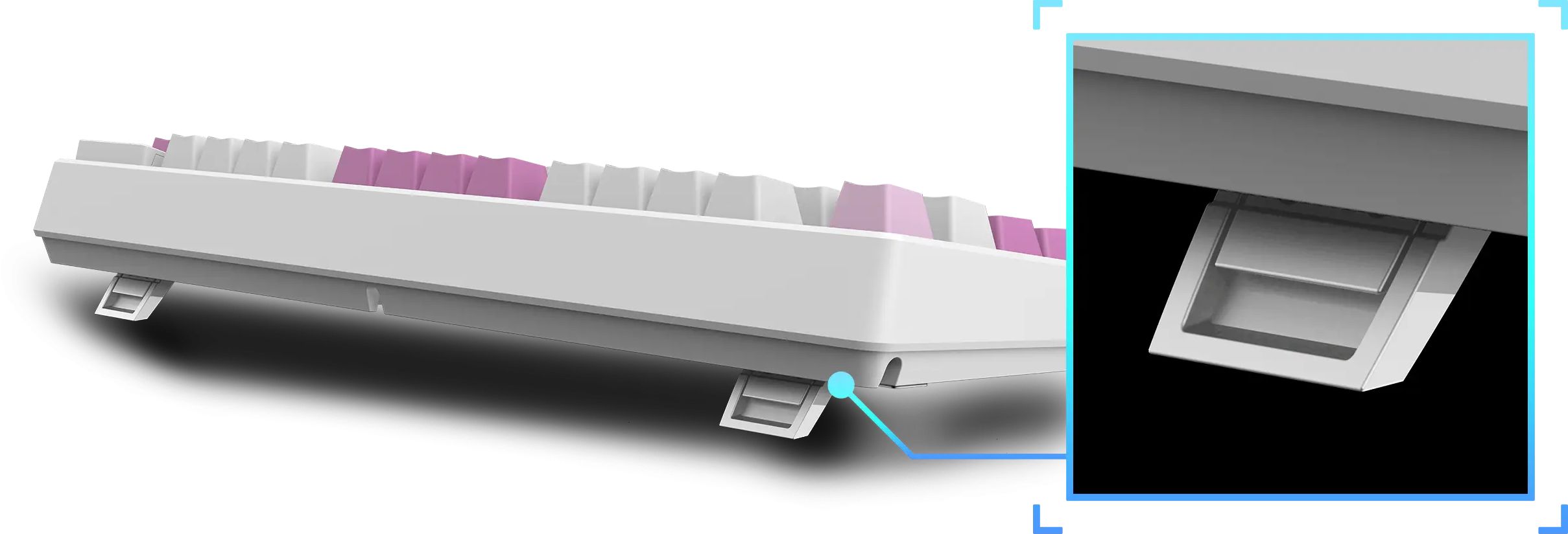 Клавіатура оснащена двома регульованими ніжками з двома варіантами кута нахилу, що забезпечує більш ергономічне положення зап’ясть під час тривалого використання.