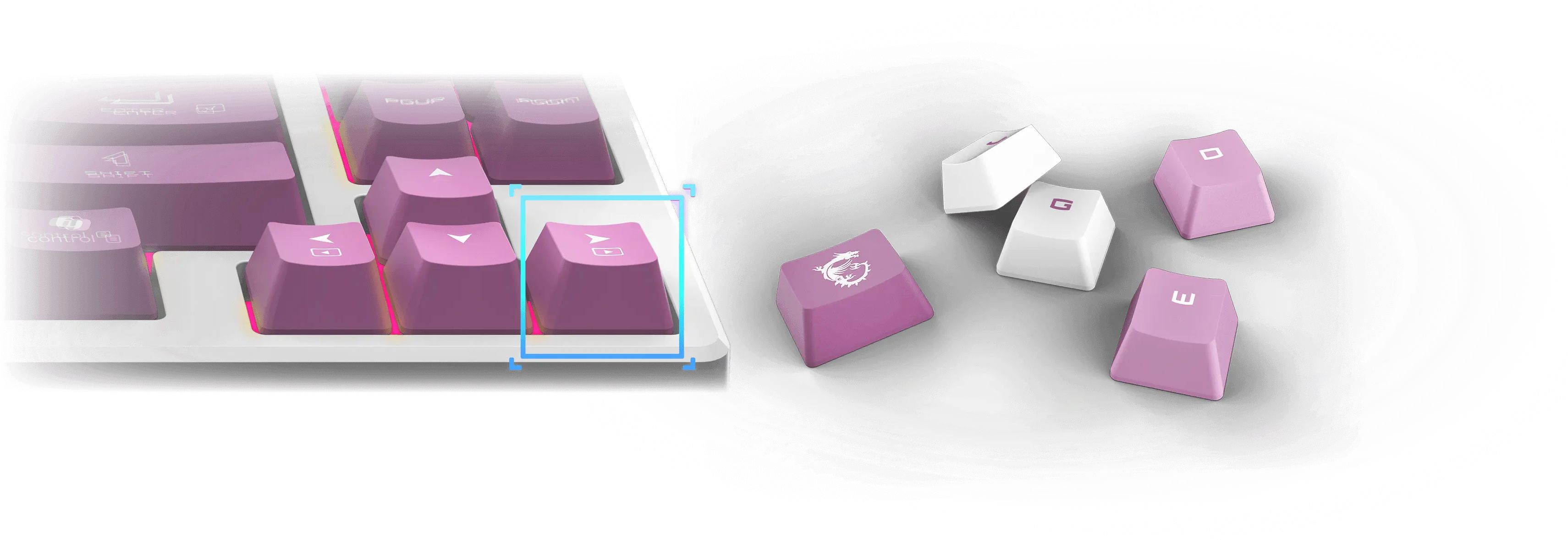 Клавіатура оснащена кейкапами з сублімаційним друком на PBT, відомими своєю довговічністю та приємною текстурою. Ці кейкапи не затираються і не вицвітають, тому символи залишаються чіткими навіть після тривалого використання. Текстурована поверхня забезпечує комфортний і надійний набір тексту.