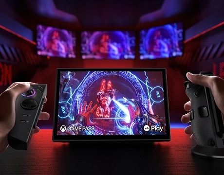 Перейдіть від портативного режиму до режиму стаціонарної консолі, від'єднавши контролери, щоб створити автономний геймпад. Ви можете насолоджуватися AAA-іграми на 8.8-дюймовому екрані де завгодно або приєднати пристрій до телевізора, щоб грати на великому екрані вдома.